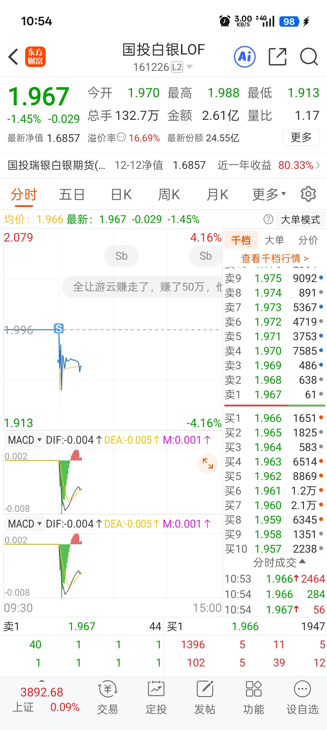 $国投白银LOF(SZ161226)$ 开盘直接清仓了。不敢再玩了