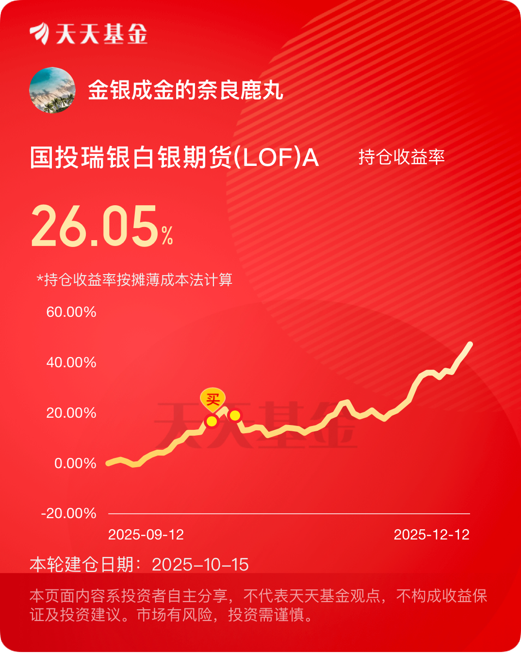 $国投瑞银白银期货(LOF)A$ 继续持仓
