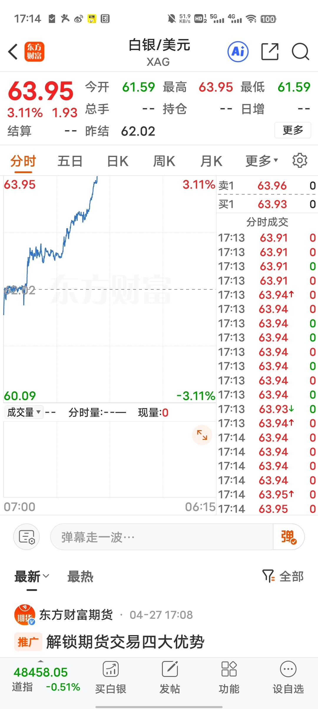 现货白银价格涨疯了。