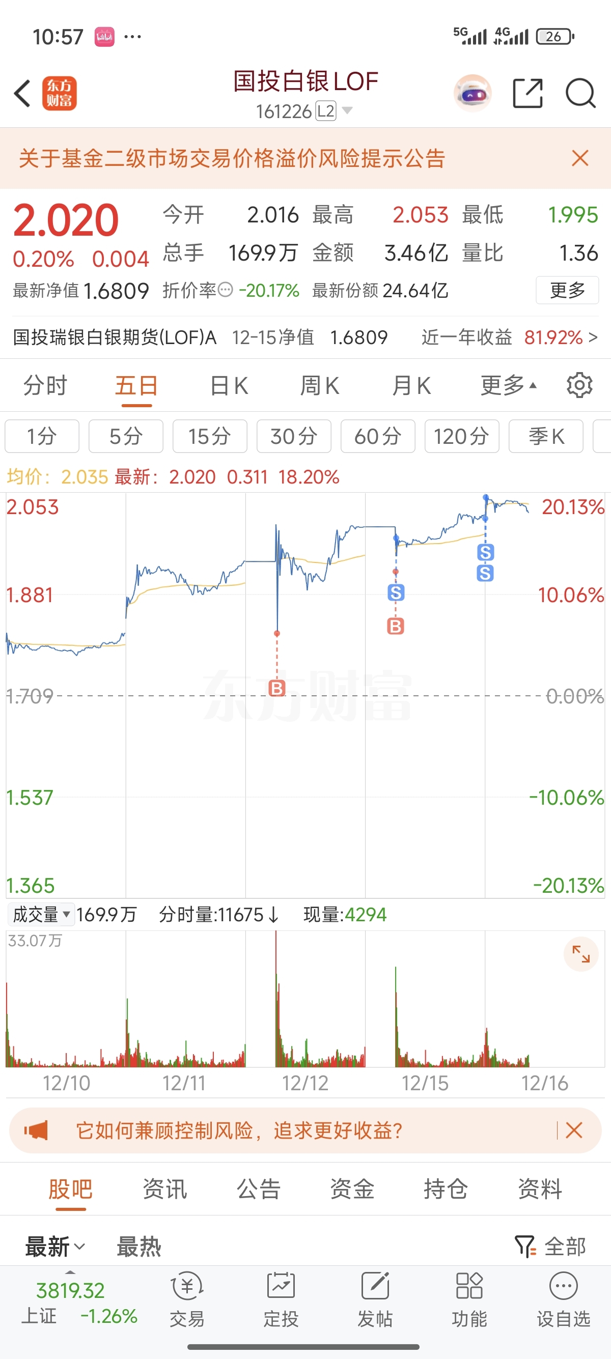 $国投白银LOF(SZ161226)$ 三天十六个点,先撤了在里边兄弟发财,好运!