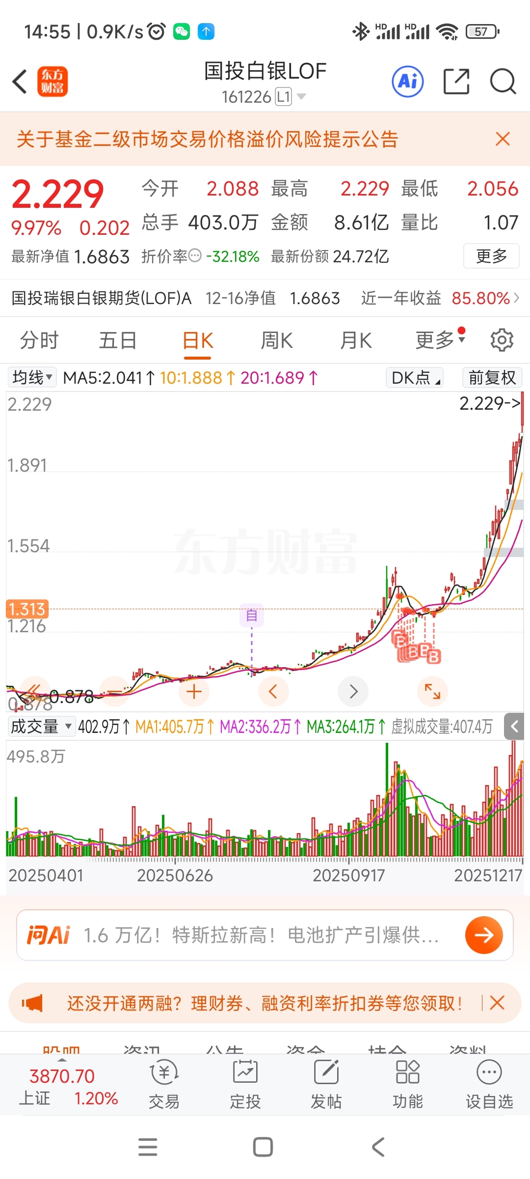 $国投白银LOF(SZ161226)$ 当时加自选没买后悔,现在后悔买少了