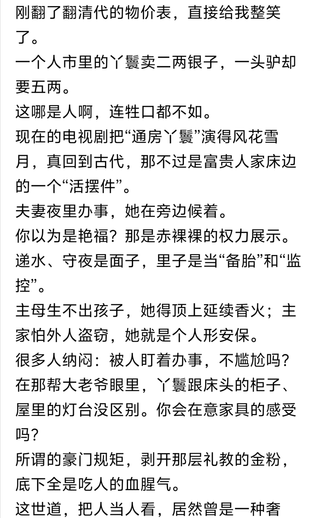 哇塞,古代2两银子买个丫鬓,现在2两才1500元,确实低估了不少