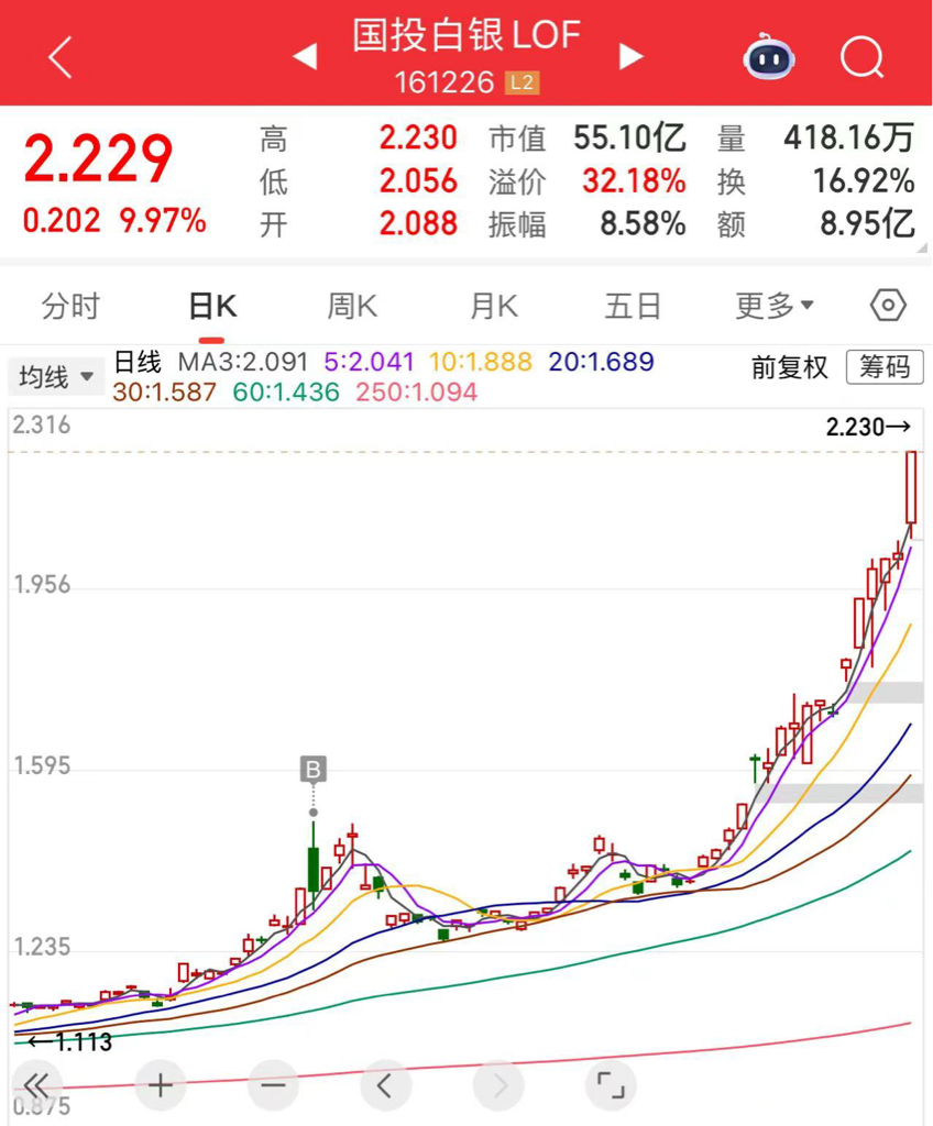 $国投白银LOF(SZ161226)$ 这也太香了。当初买在大阴线,限购前一天。真是运气好