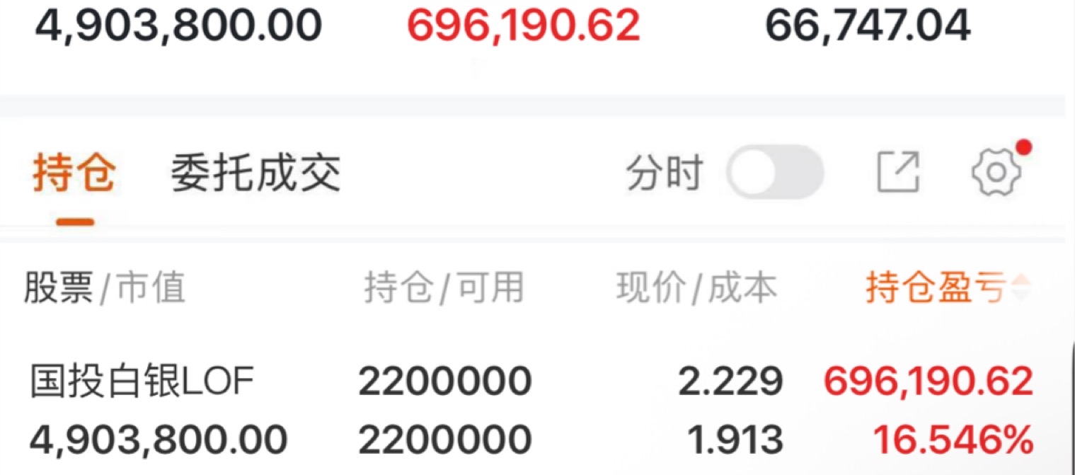 $国投白银LOF(SZ161226)$ 明天挂跌停价卖,这样如果开盘我起码能优先跑掉,如果还能红开也算获利了解感谢上天,运气也是实力的一部分,今天实在上头进了重仓 实在是没想到能溢价32拉了个涨停……心慌慌的。不过既来之则安之,明天八九点起床提前挂卖单排着当赌一手运气。