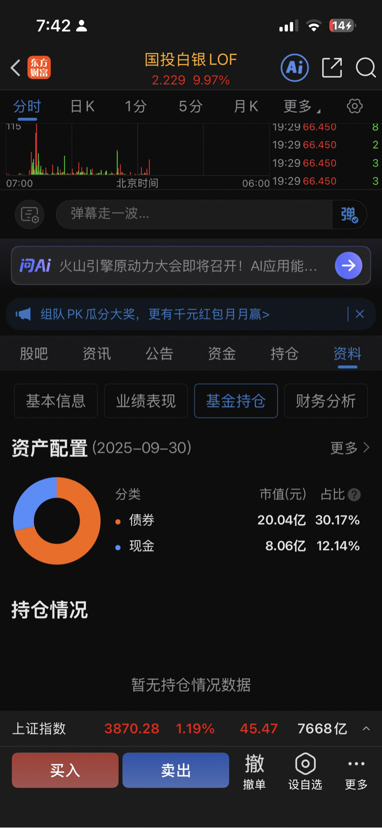 :白银基和黄金基对比,此基持仓30%债券,12%现金,那么最大持仓白银60%!黄