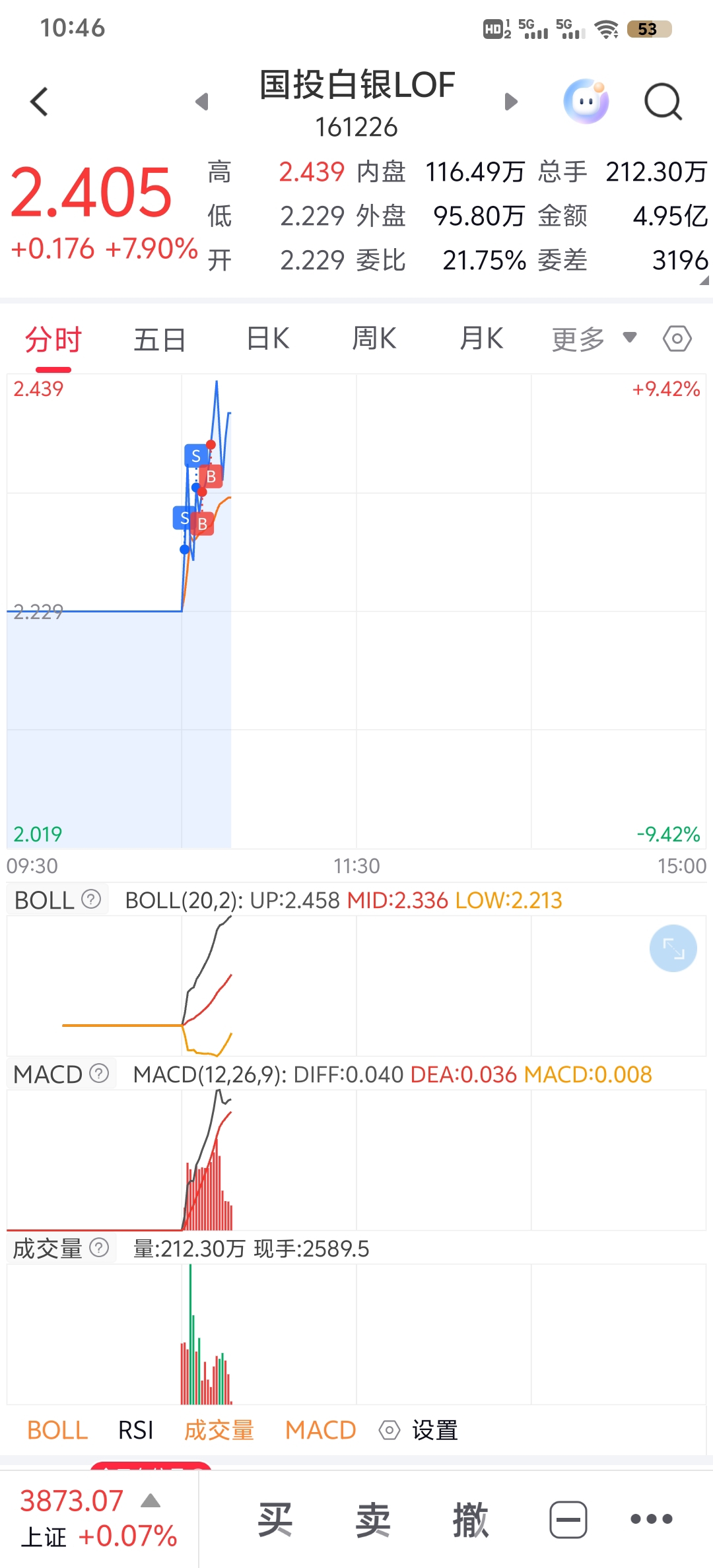 $国投白银LOF(SZ161226)$ 冲呀!封死!它秒的卖飞了。。。我接
