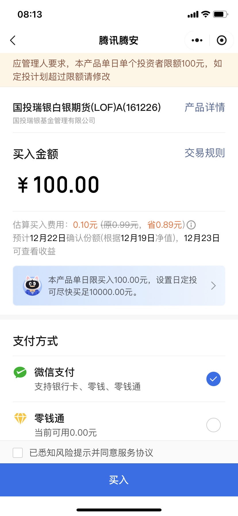 昨天还是限购1000元的,今天又限购100元了。啥意思?