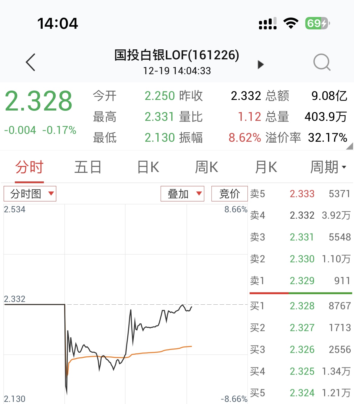 受此影响 今早场内 白银LOF (161226)低开幅度较大,最大跌幅-8.66% 随后迅速拉升