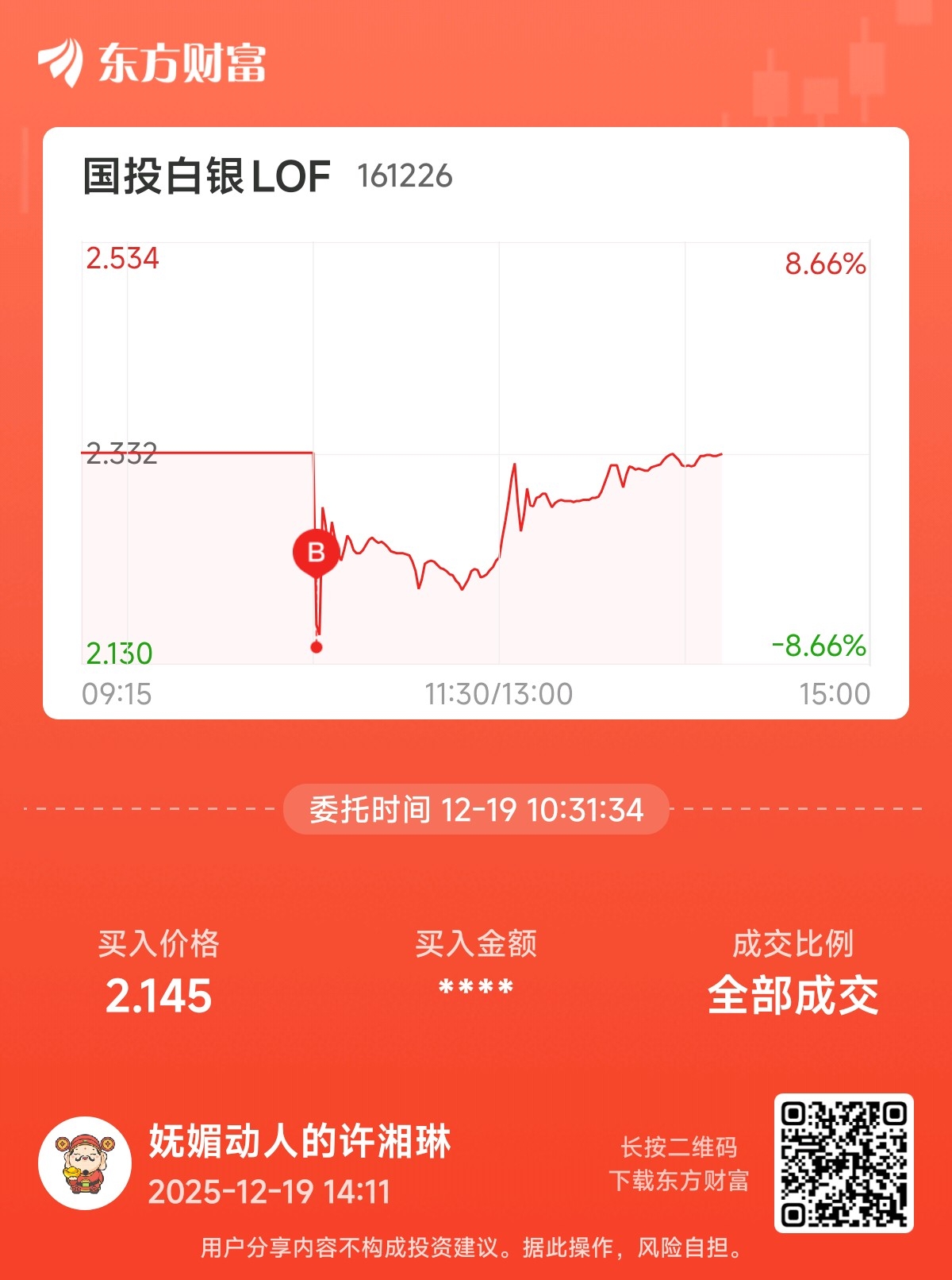 $国投白银LOF(SZ161226)$ 买不到最低位
