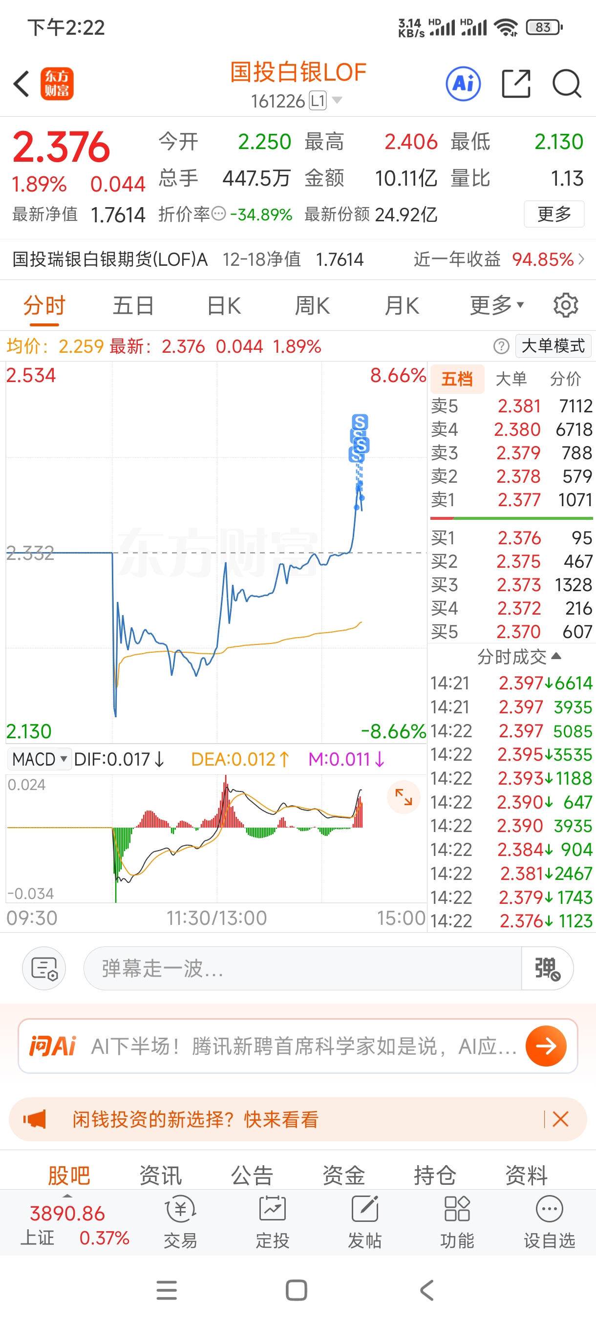 $国投白银LOF(SZ161226)$ 感谢大哥救我,你可以自由飞翔了