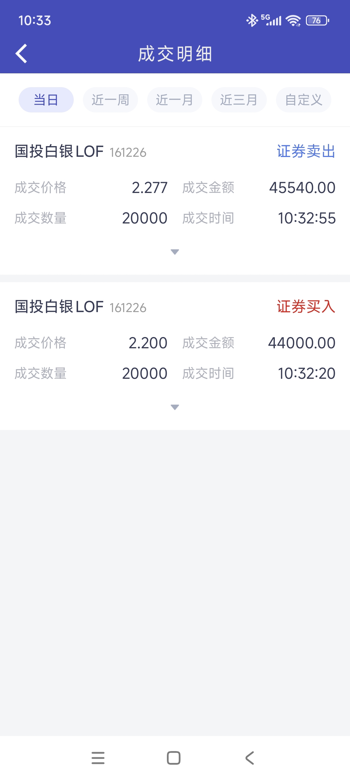 $国投白银LOF(SZ161226)$ 今天的交割单。量化资金这样搞,就是给散户送钱。
