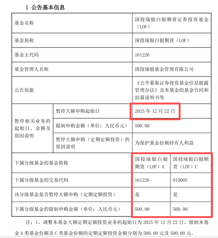 现在国投瑞银基金改了,这是好事,国投瑞银自己也认识到自己10月份限额公告的设定限额不合理了:下周开始,白银基金AC份额都是限额500元,A份额从100元提高到500元,C份额从1000元降低到500元——提高了A的申购限额,一定程度上有助于抑制场内溢价,降低C份额,在容量有限的情况下,一定程度上减少短线交易仓位。