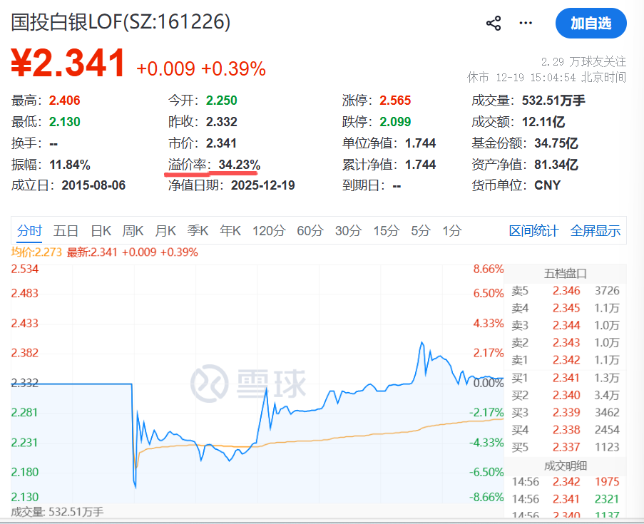 以至于,现在白银基金场内溢价很高,很多投资者就是每天申购套利,每天赚个盒饭钱也行啊,你去大街上问人要几十块钱,不亲不友的谁给你啊,你说是吧,。没人和钱过不去,肯定溢价套利啊。
