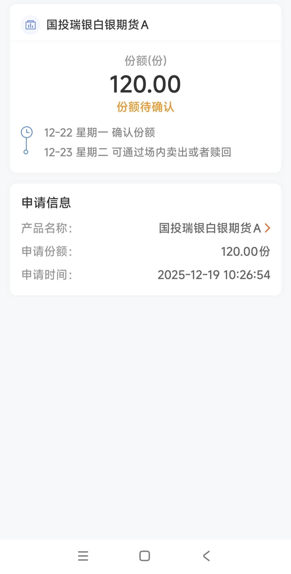 $国投白银LOF(SZ161226)$ 兄弟们,我帮你们踩过雷了,下礼拜一买,礼拜四才能交易,礼拜二确认份额后需要2天,有3天时间是安全点的,