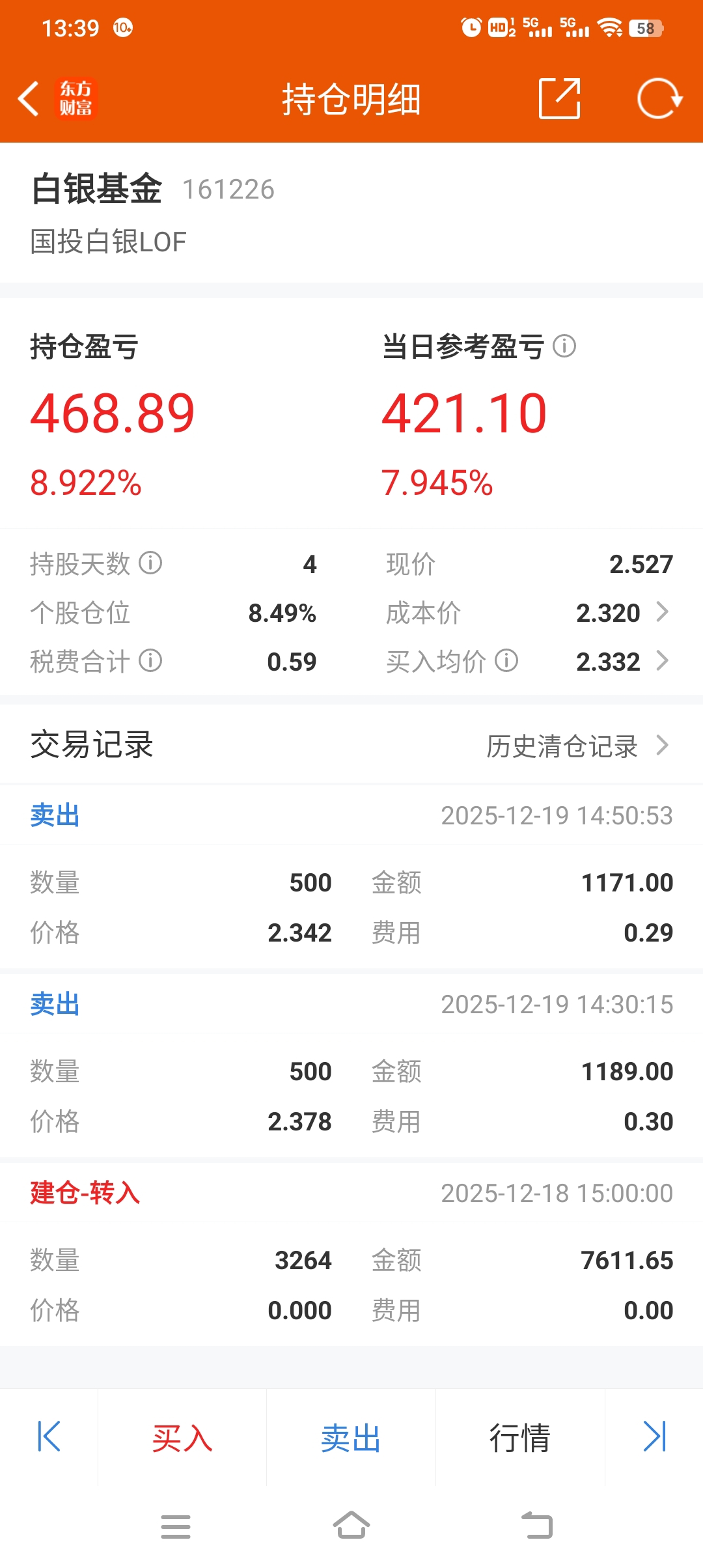 上周转入场内的,减亏了,哎。
