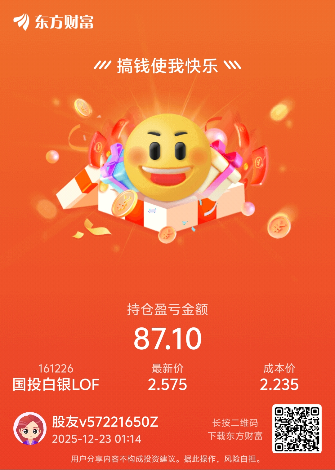 $国投白银LOF(SZ161226)$ 白银套利美滋滋,每天加一到两手尾盘再卖出去。
