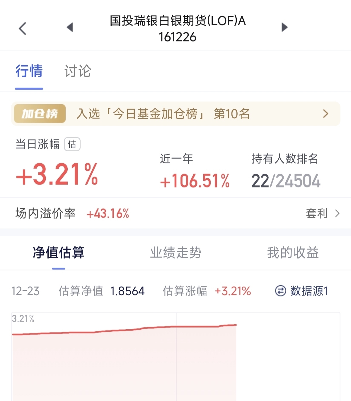 $国投白银LOF(SZ161226)$ 外盘涨了3.2了,今天估计能涨5