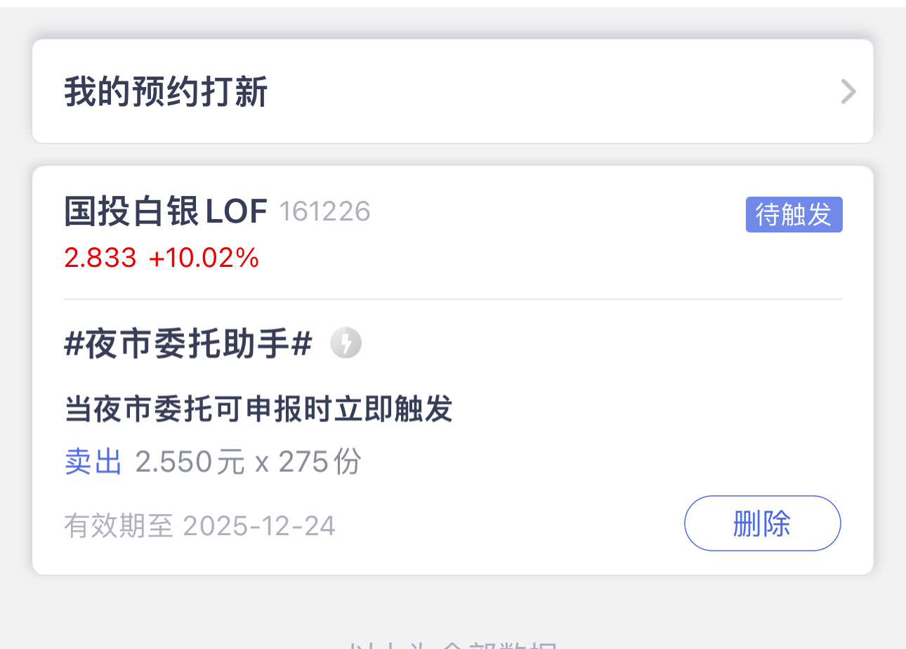 $国投白银LOF(SZ161226)$ 明天已报跌停卖出