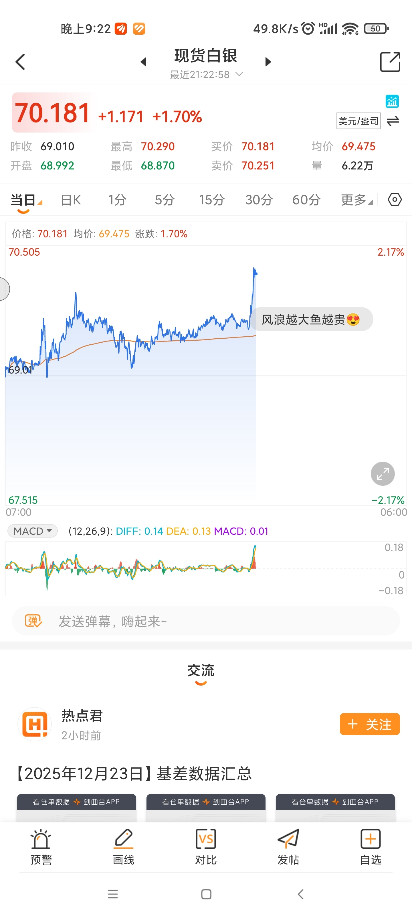 $国投白银LOF(SZ161226)$ 新高了,70美金了,场内的兄弟明天又要吃涨停,羡慕啊
