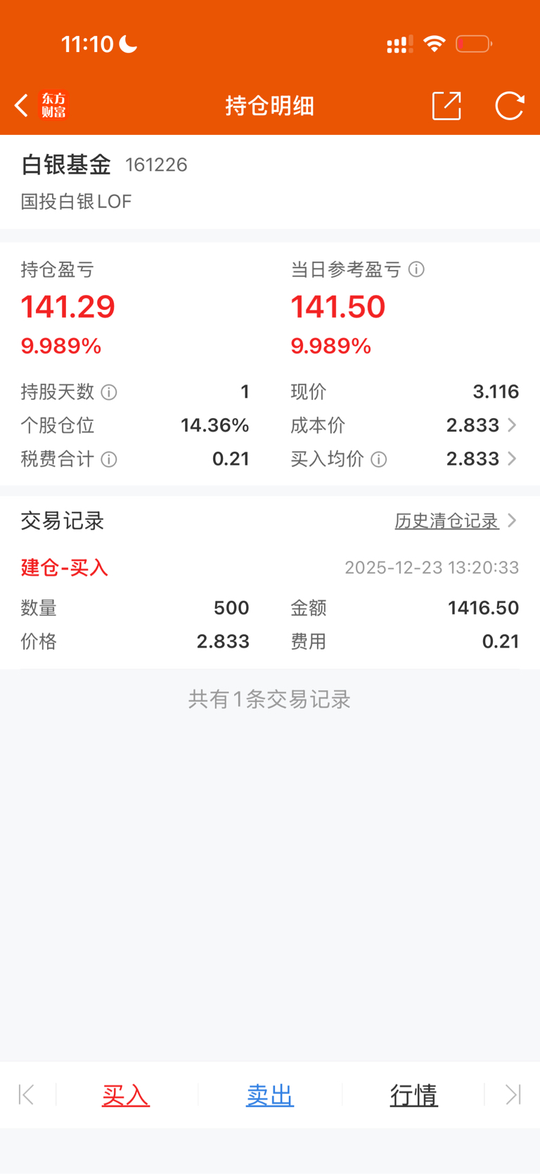 昨天买少了 胆子小 早知道多买点 今天都卖了$国投白银LOF(SZ161226)$