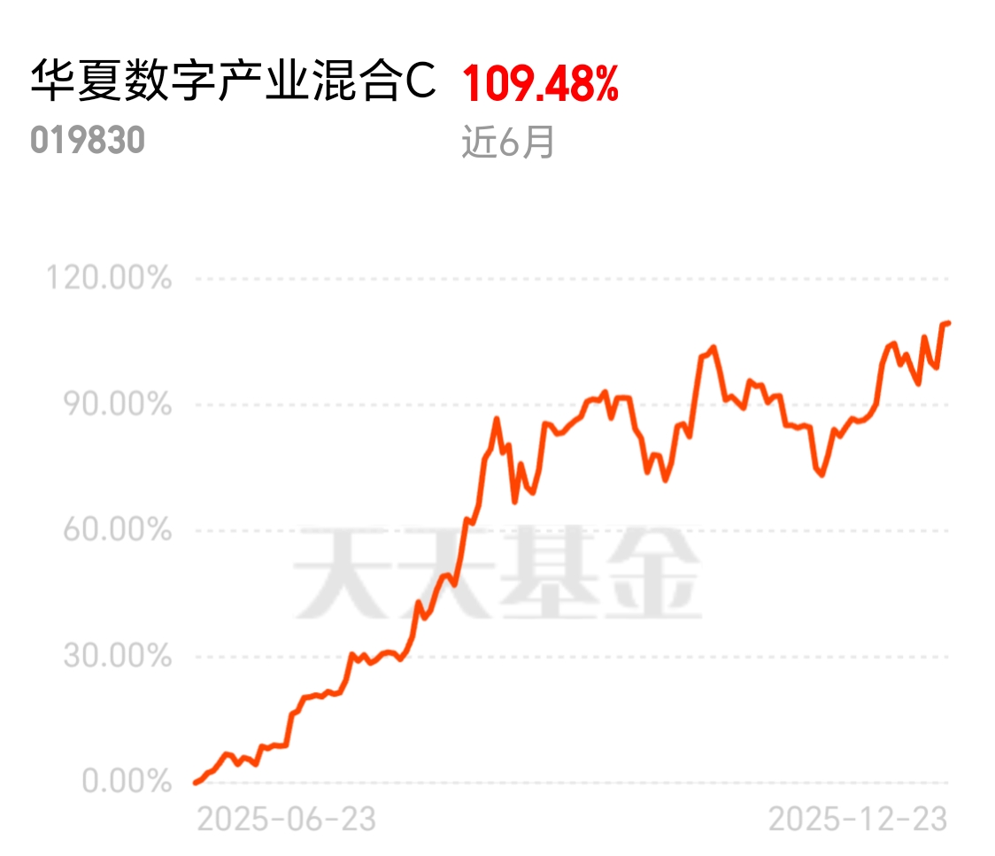 近一周的收益有了7.42%,近6个月收益翻倍109%+,最近这基弹性真不错,只要市场回暖就能单天涨5个点,行业集中+个股集中的策略来布局AI算力还是不错的,趁市场回调了过来加点$华夏数字产业混合C$