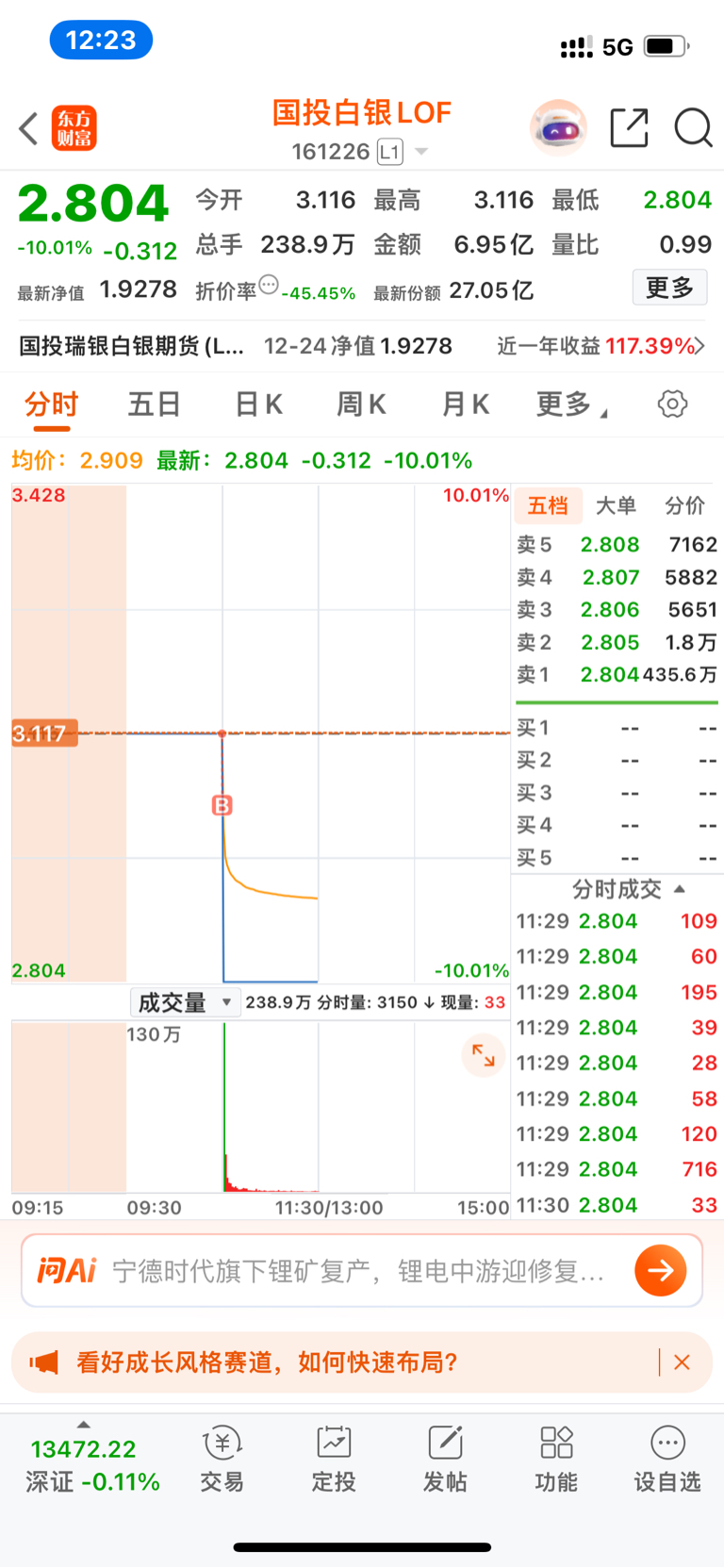 $国投白银LOF(SZ161226)$ 家人们,白银被我买崩了吗?