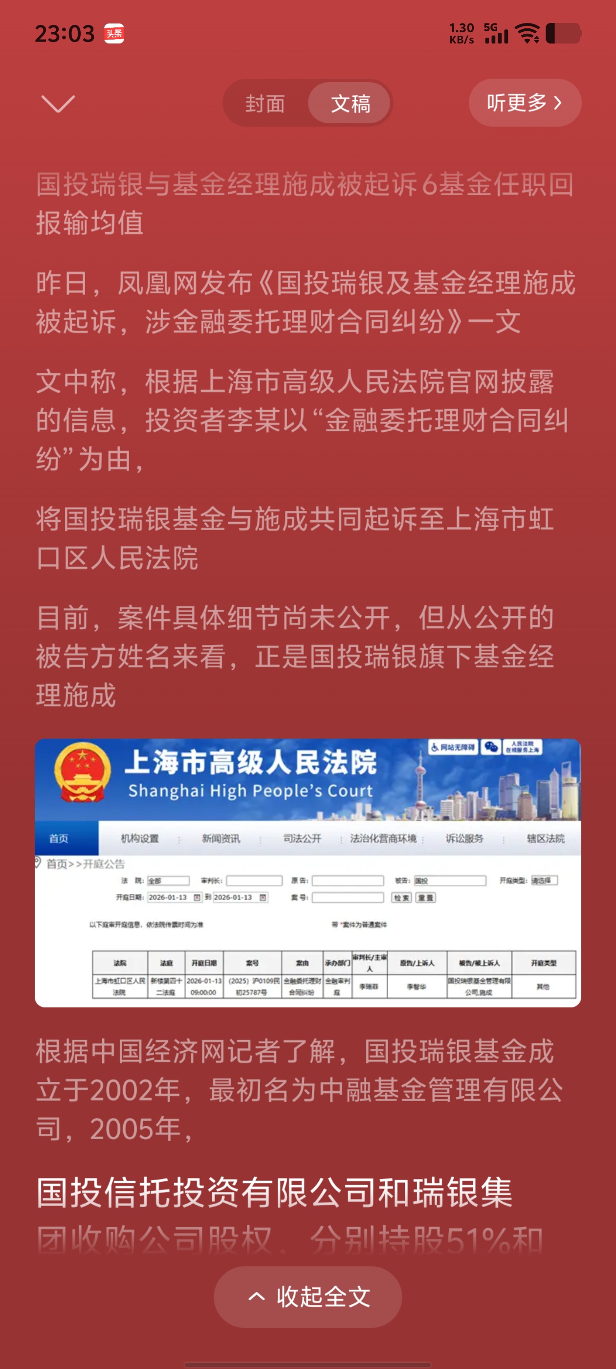 今晚刚收到的重大利好消息国投瑞银基金经理被上海人民法院起诉了!太解气了恶意操纵基金股价,对这种基金经理恶庄就该严格惩罚!!兄弟们有救了!!