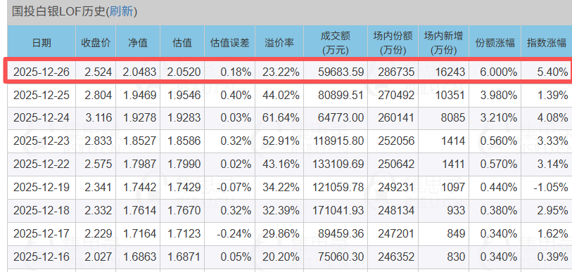 溢价越高,回落的风险越大,白银LFO的价格,从12月24日的3.116,到12月26日2.524,直接跌了18.9%。