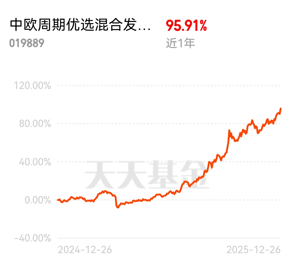有色金属年内涨幅快翻倍,周期牛市格局已定!中欧周期优选混合发起 C 行业集中度领先同类,聚焦贵金属 + 工业金属,近 1 年 95.91% 的收益,在周期基金里妥妥的头部水平。$中欧周期优选混合发起C$