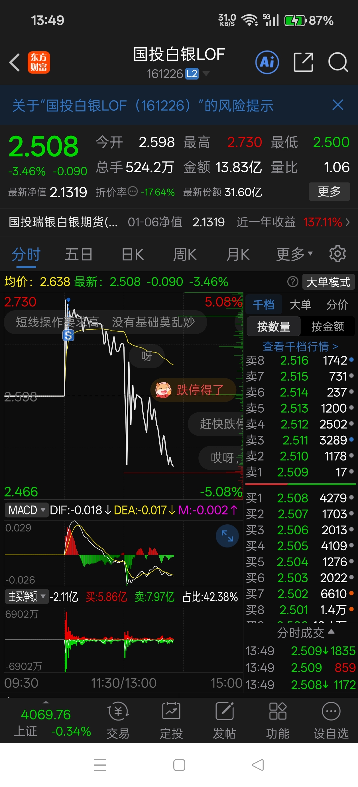 温馨提示: 1.根据《证券法》规定,禁止编造、传播虚假信息或者误导性信息,扰乱证券市场;2.用户在本社区发表的所有资料、言论等仅代表个人观点,与本网站立场无关,不对您构成任何投资建议。用户应基于自己的独立判断,自行决定证券投资并承担相应风险。《东方财富社区管理规定》