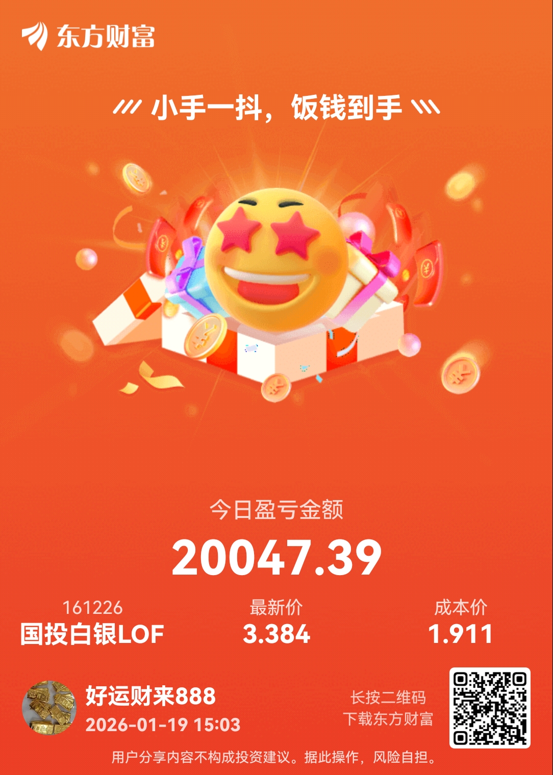 感谢白银LOF,爱你么么哒