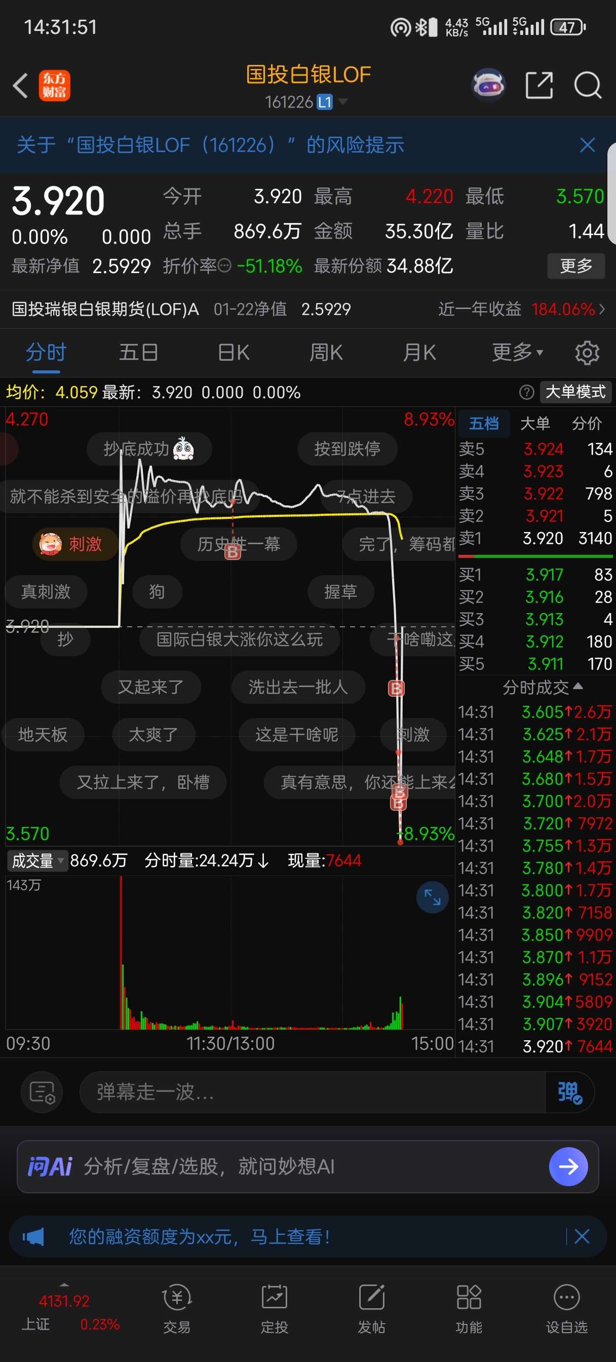 $国投白银LOF(SZ161226)$ 这是在干嘛?还是场内会玩哈