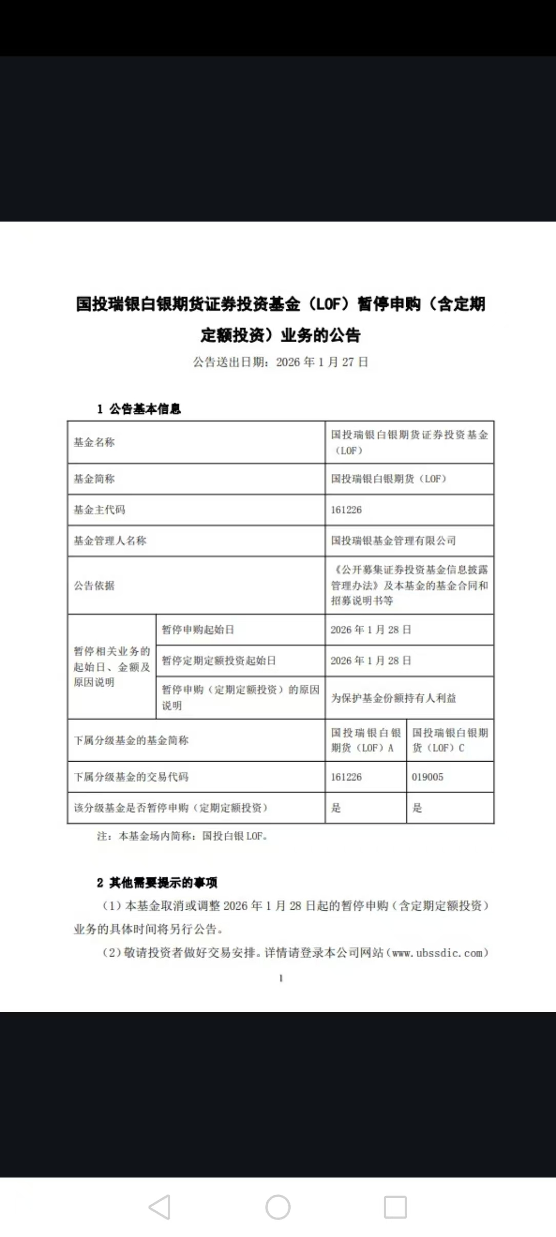 $国投白银LOF(SZ161226)$ 这是不让申购了吗,,,,
