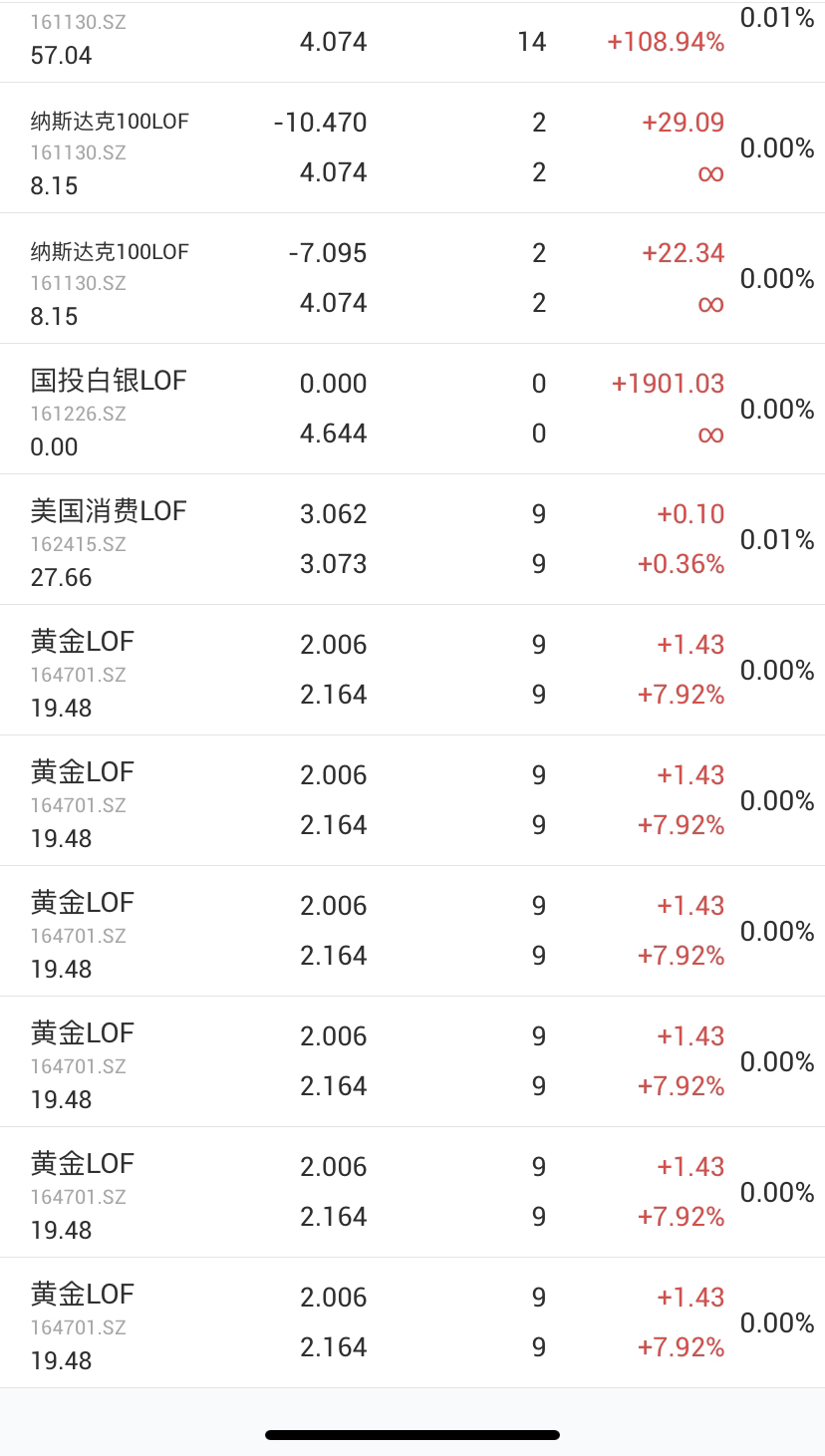 黄金lof164701,溢价2.54%限额10一拖六