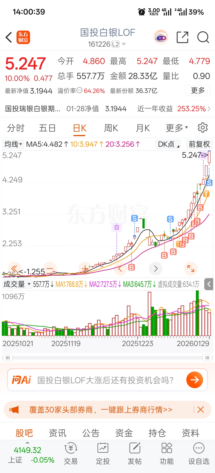60+的溢价,除非内盘白银大涨十几个点,不然明天又是停牌一天,周末两天怕美伊局势