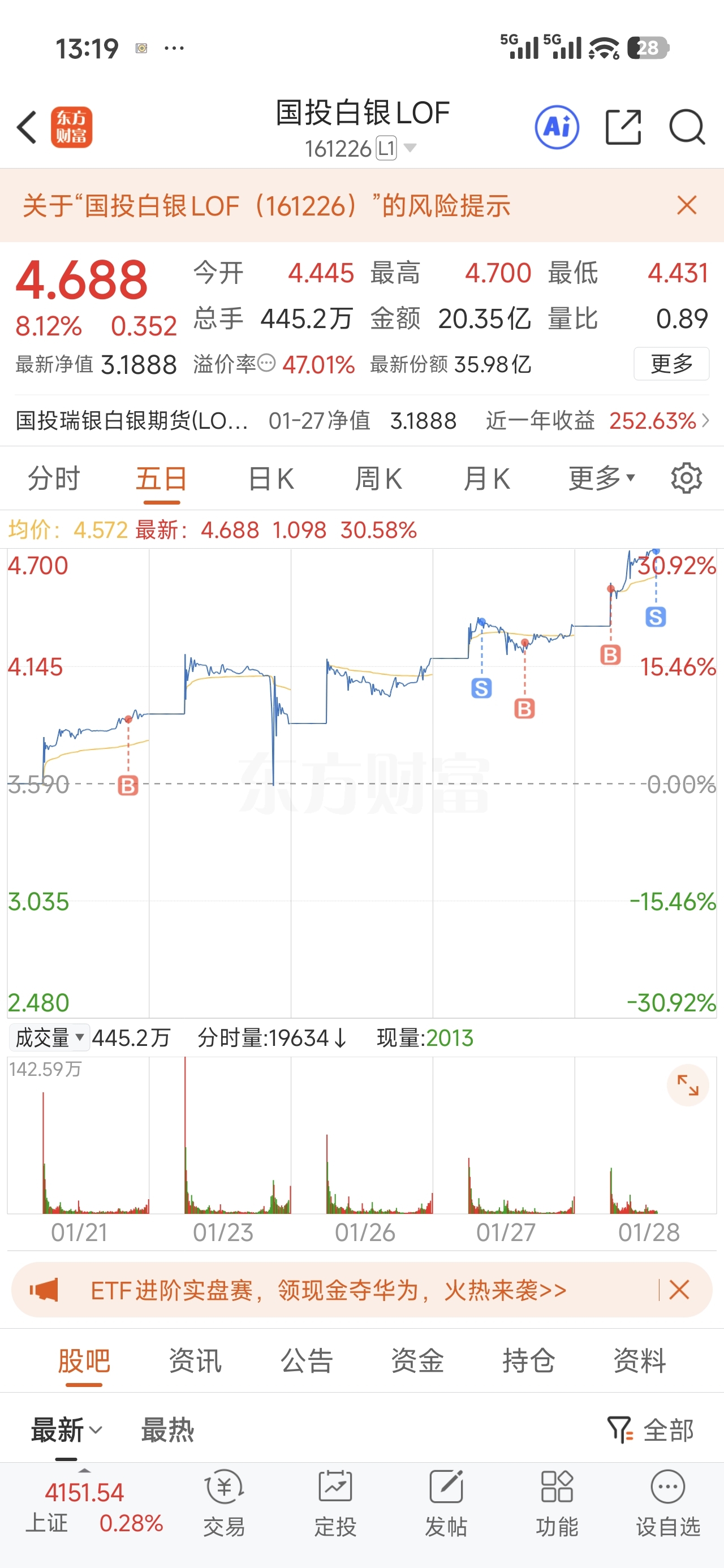 $国投白银LOF(SZ161226)$ 周一我全仓跑了,不知道跑的掉不