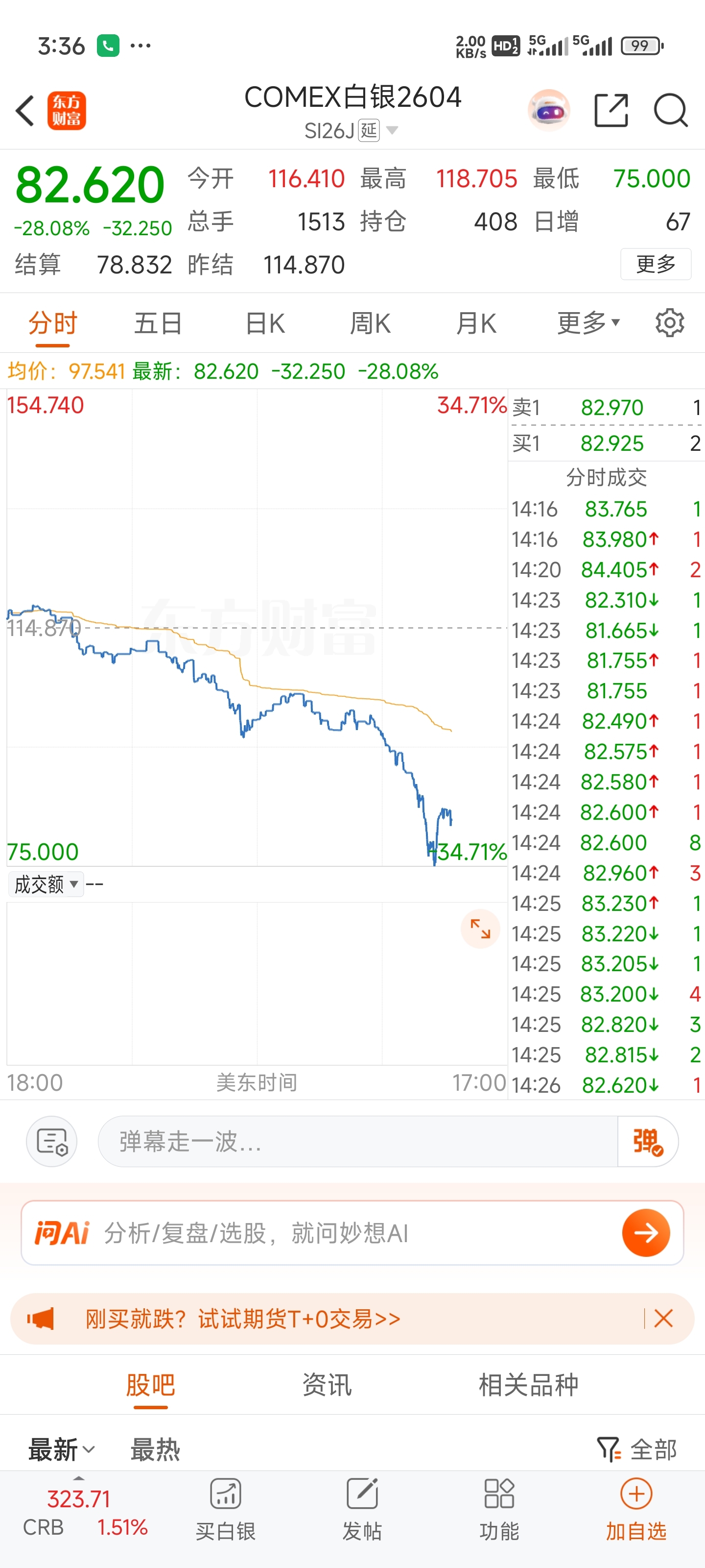 颤抖吧各位,白银期货跌百分之三十几也是活久见了