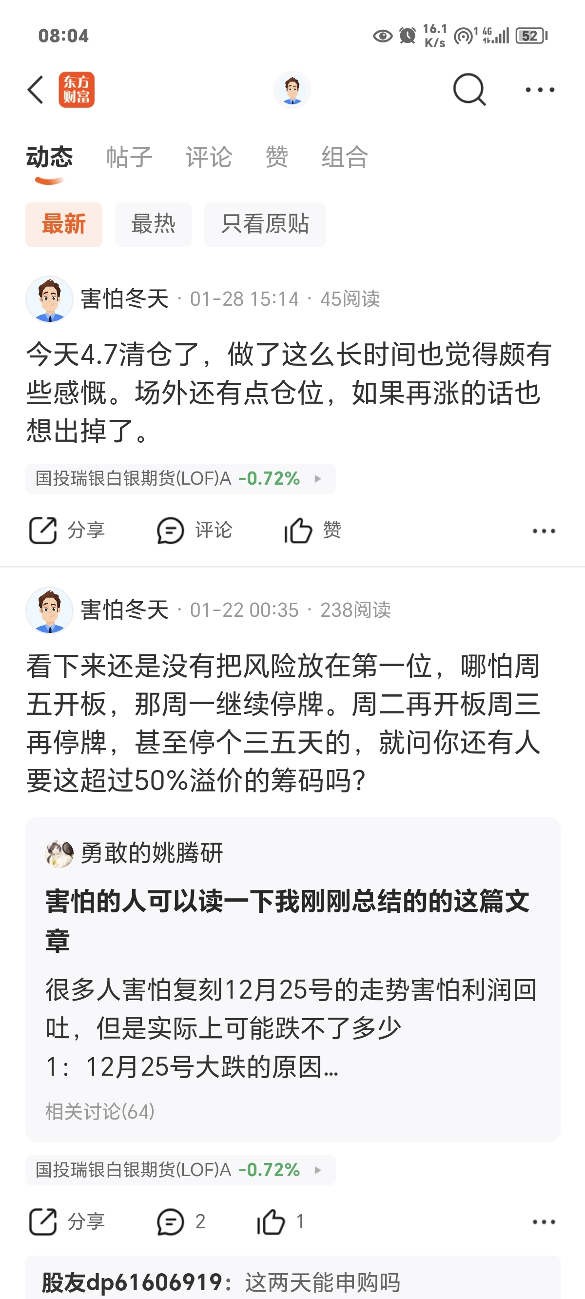 当时也没什么多的想法,就是觉得溢价太高。场外的话其实昨天是最好的卖点,可惜没想到