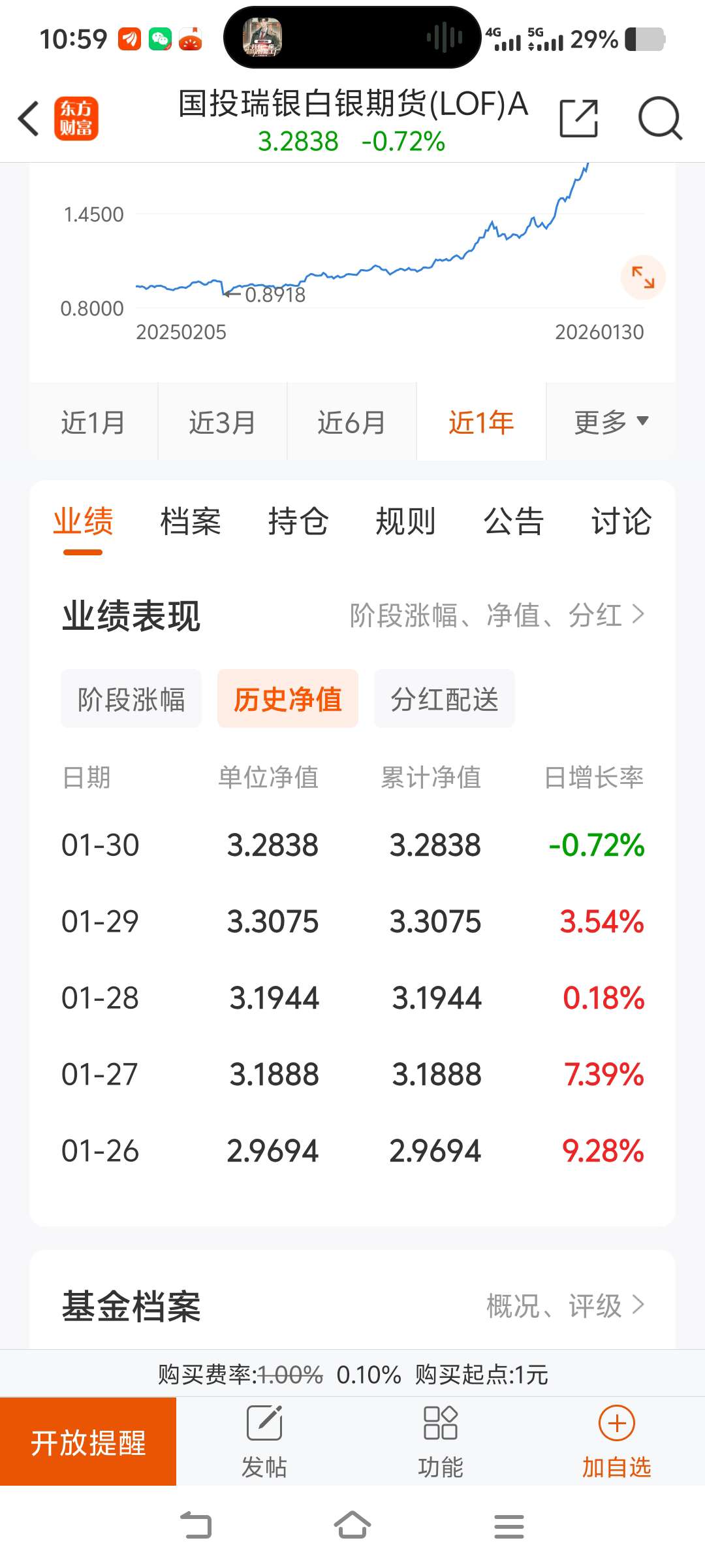$国投白银LOF(SZ161226)$ 各位不会看么,1.30号净值没变化,期货白银跌幅是6个点。这货基本没亏。怀疑空仓或者反手做空了一部分对充。