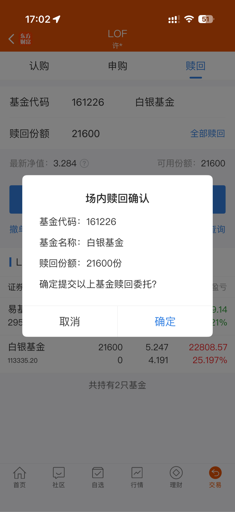 $国投白银LOF(SZ161226)$ 我这个赎回,现在不在交易时间吧,需要等到明天再行吗? 赎回的话,最终它能返回多少?