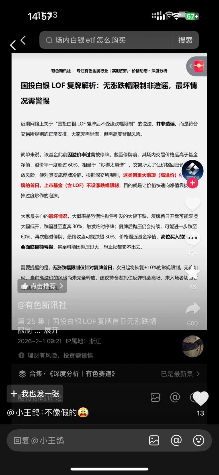 郑重声明:用户在基金吧/财富号/股吧等社区发表的所有信息(包括但不限于文字、视频、音频、数据及图表)仅代表个人观点,与本网站立场无关,不对您构成任何投资建议,据此操作风险自担。请勿相信代客理财、免费荐股和炒股培训等宣传内容,远离非法证券活动。请勿添加发言用户的手机号码、公众号、微博、微信及QQ等信息,谨防上当受骗!