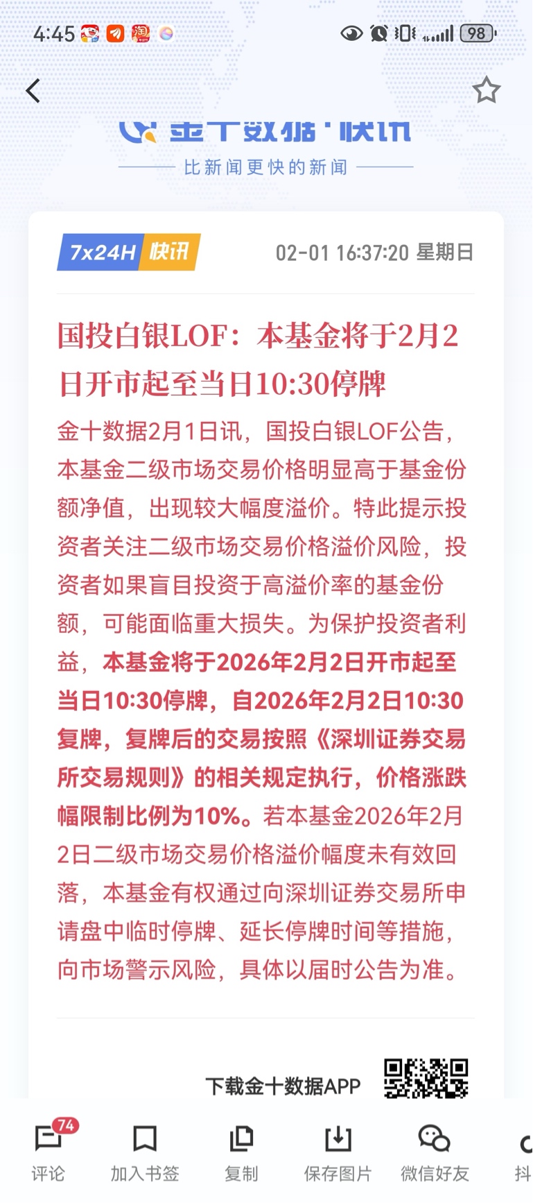 $国投白银LOF(SZ161226)$ 不要用抖音,豆包炒股,官方通告已经出来了