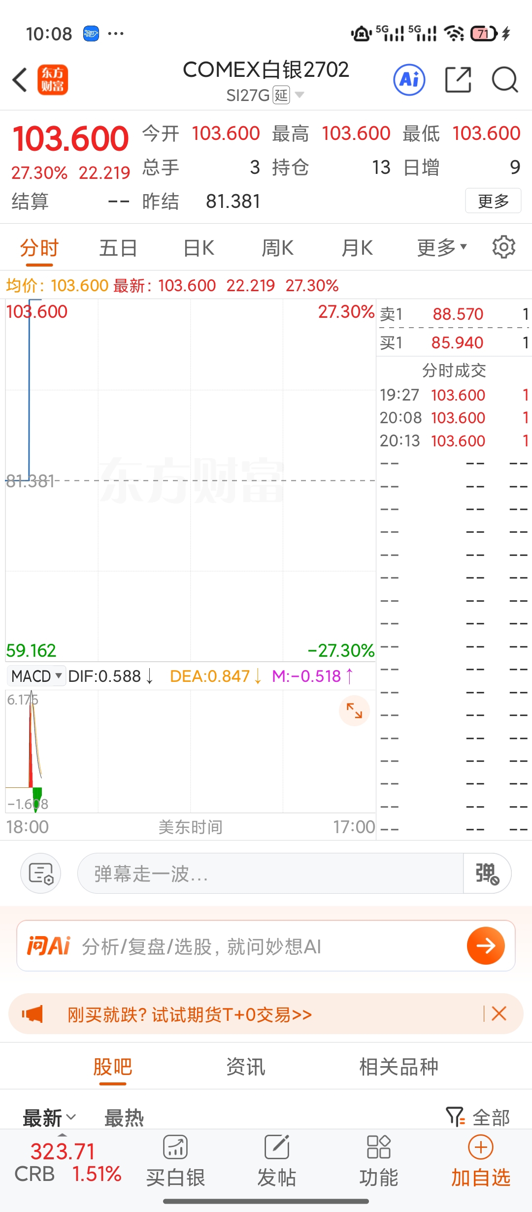纽约银涨27%,沪银在补周五的晚盘跌,周一晚上9点沪银才算开盘