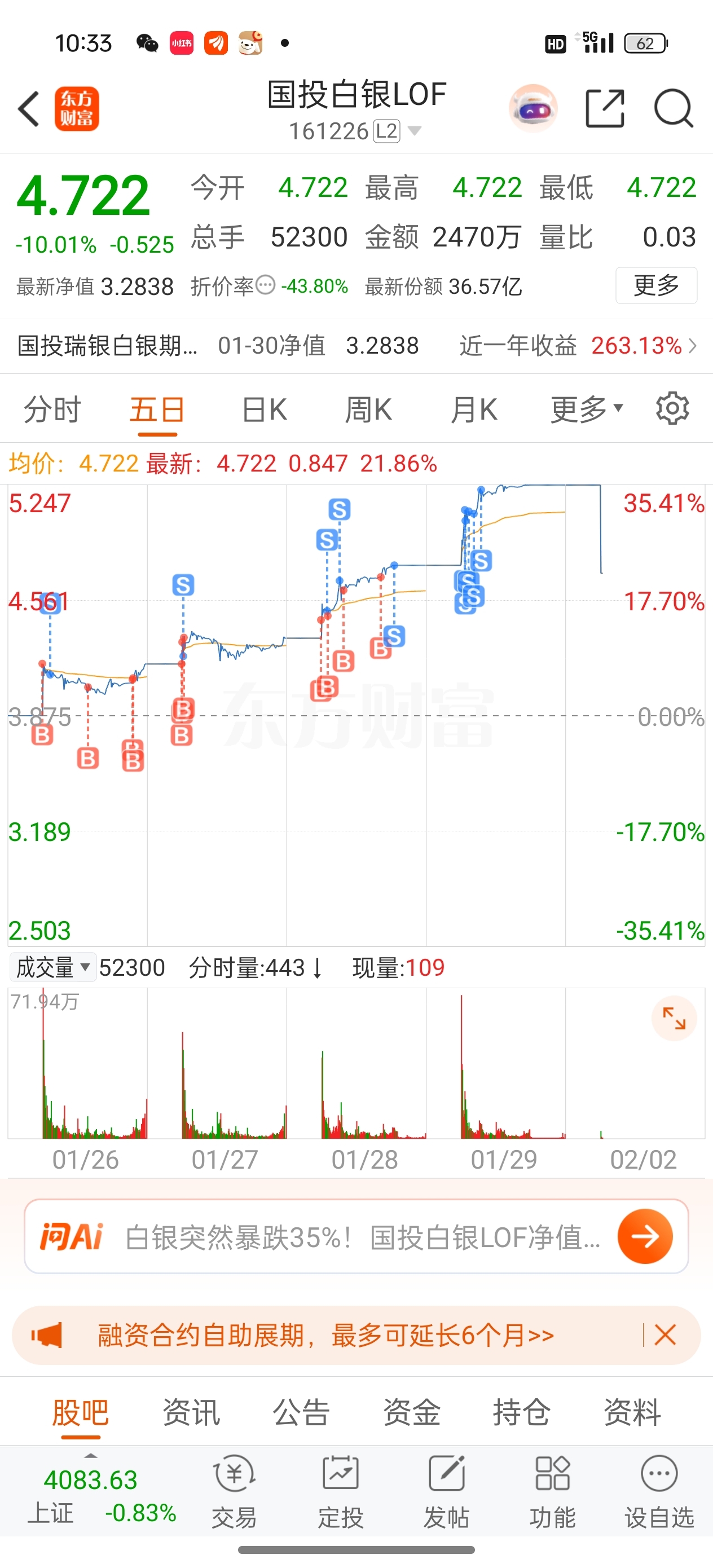 $国投白银LOF(SZ161226)$ 上周四清仓,当时盘中感到头皮发麻的危险就跑了。这次3个跌停后再看看能不能回来