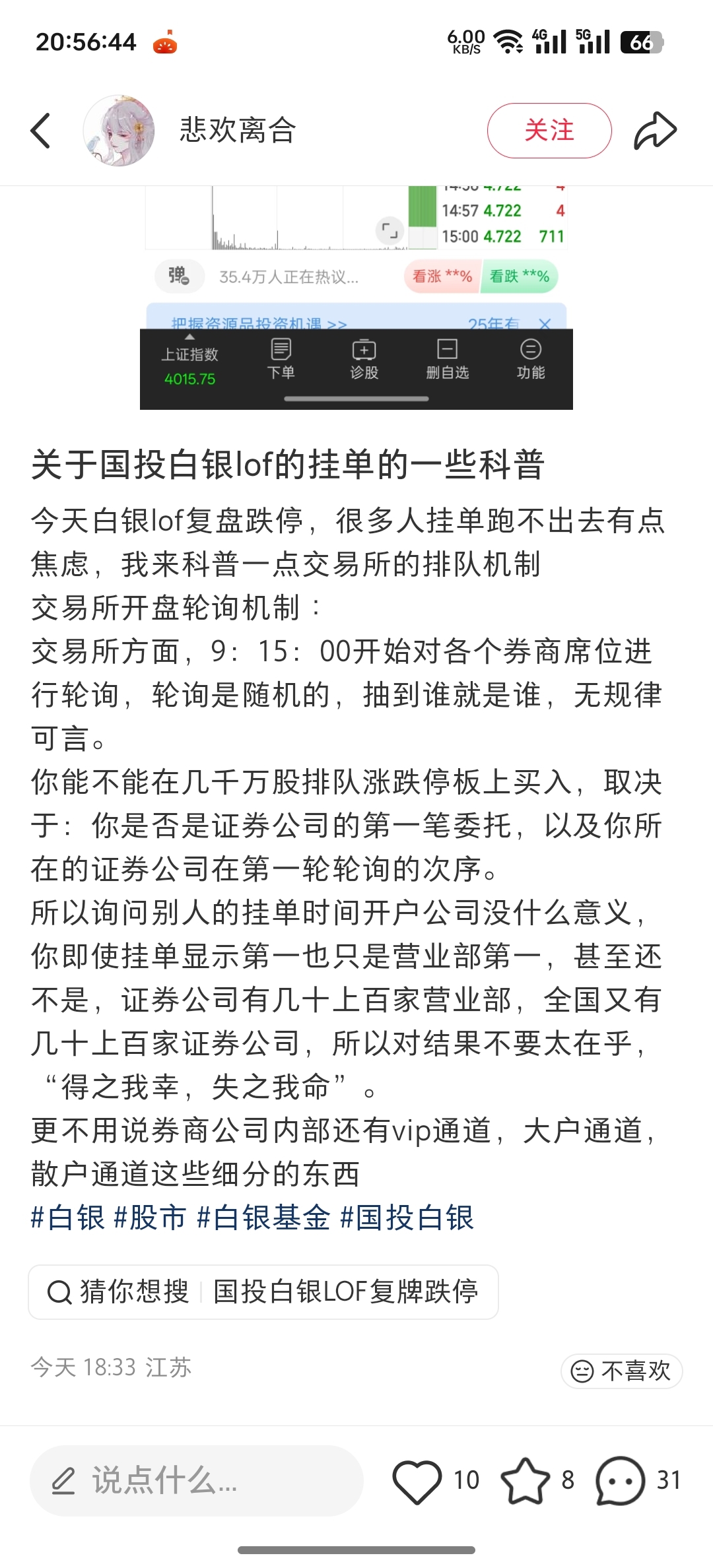 $国投白银LOF(SZ161226)$ 关于夜盘挂单排队规则(转) 。今天中奖的是国信