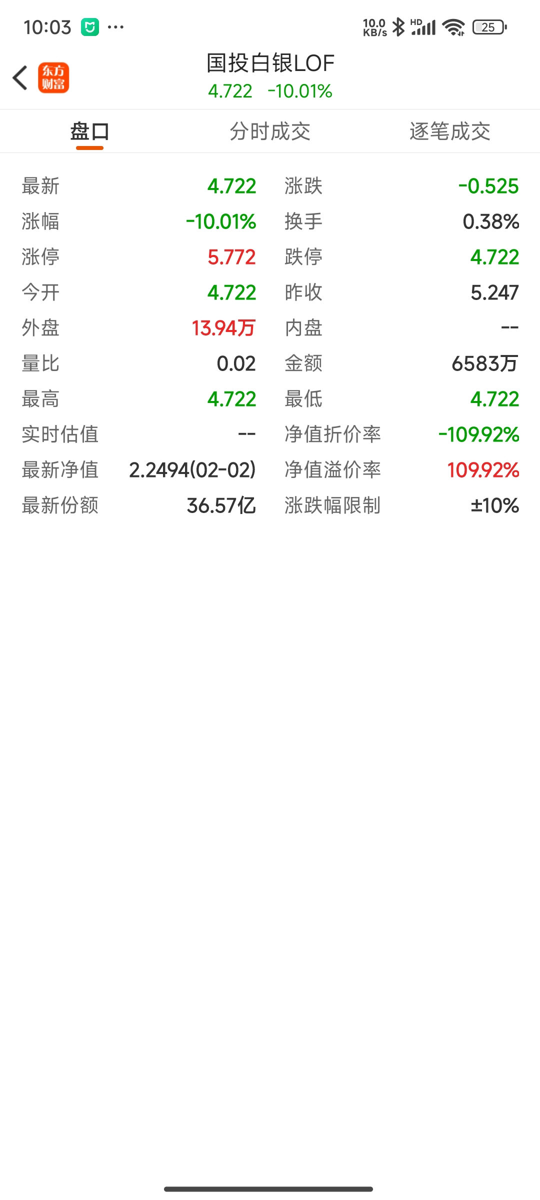 $国投白银LOF(SZ161226)$ 溢价109%了。至少跌多少啊?