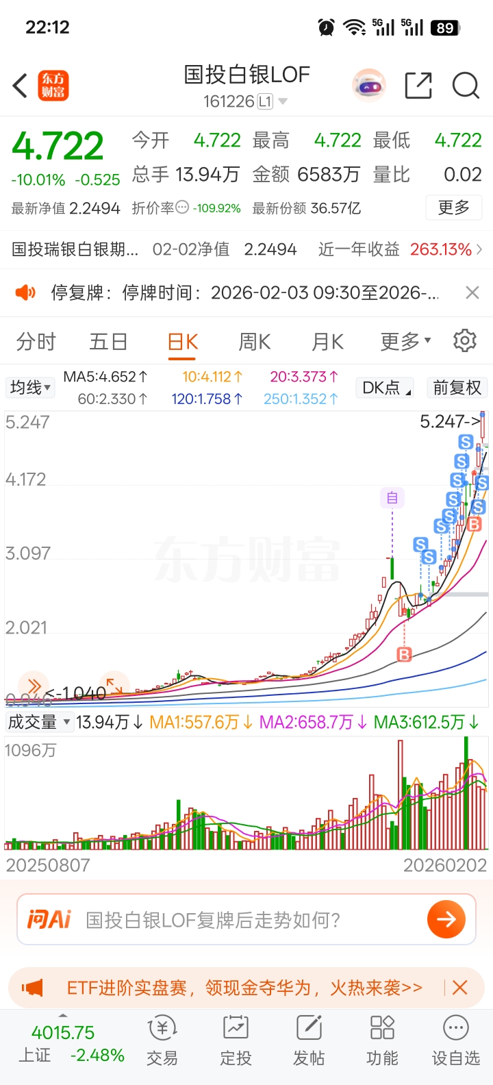 $国投瑞银白银期货(LOF)A(OTCFUND|161226)$ 还好跑的比较快
