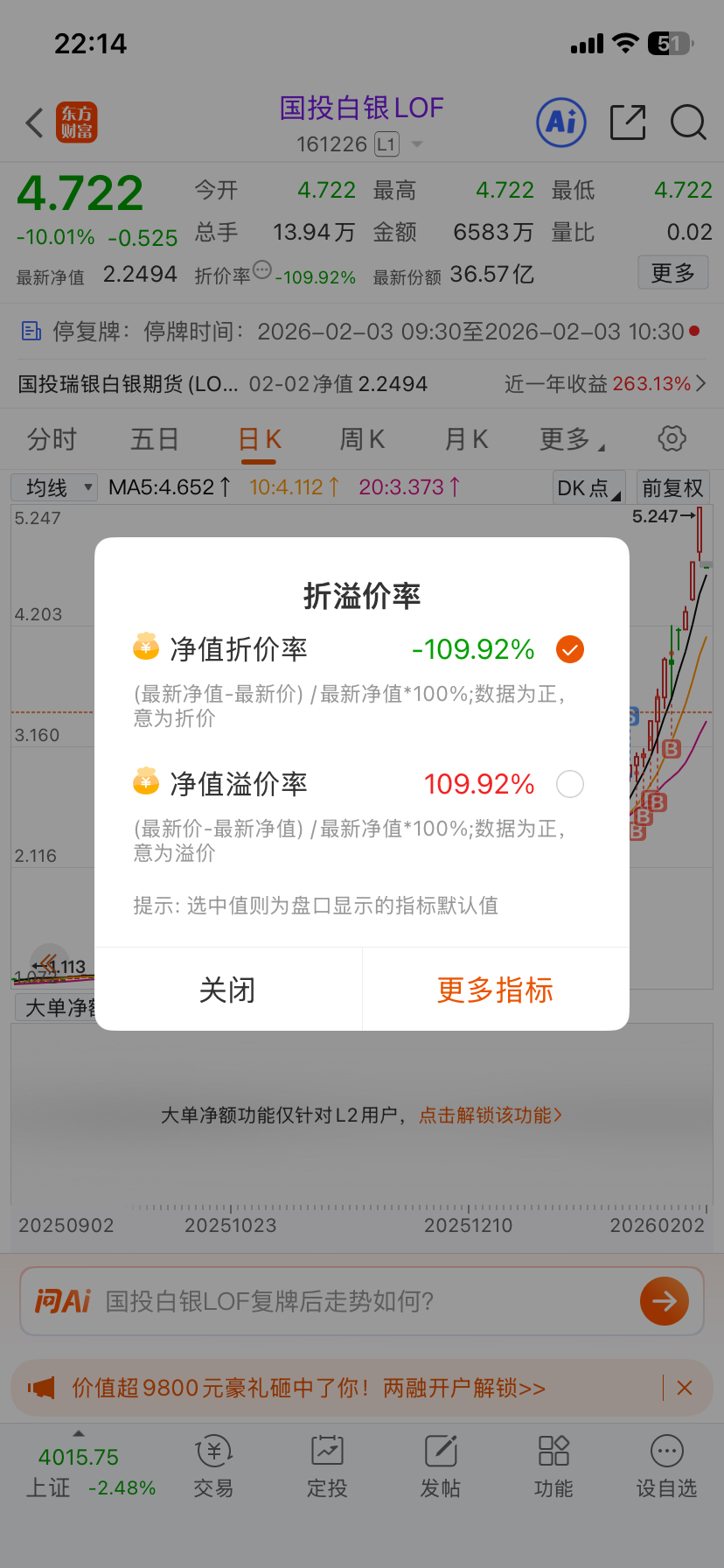 $国投白银LOF(SZ161226)$ 这个溢价经理背锅!!谁叫他星期五停牌的!全部挤压起来了
