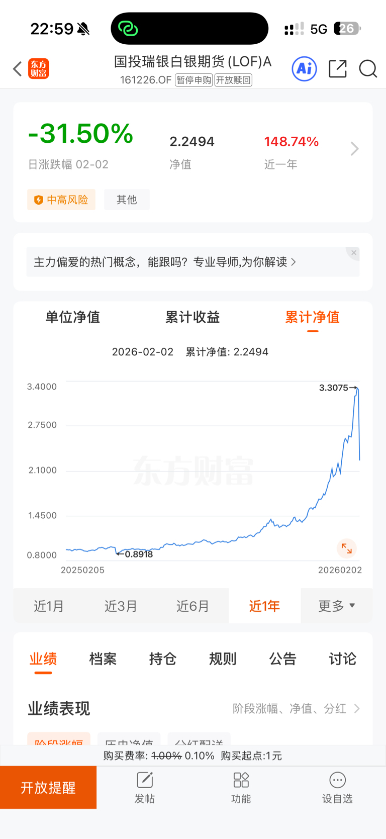 $国投瑞银白银期货(LOF)A(OTCFUND|161226)$ 为啥今天跌停能跌30%,之前涨幅也不过10%
