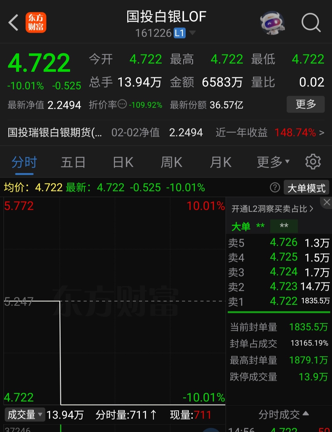 今天早上,国投白银LOF的溢价率达到109.92%,大概率是创造了历史。虽然我没